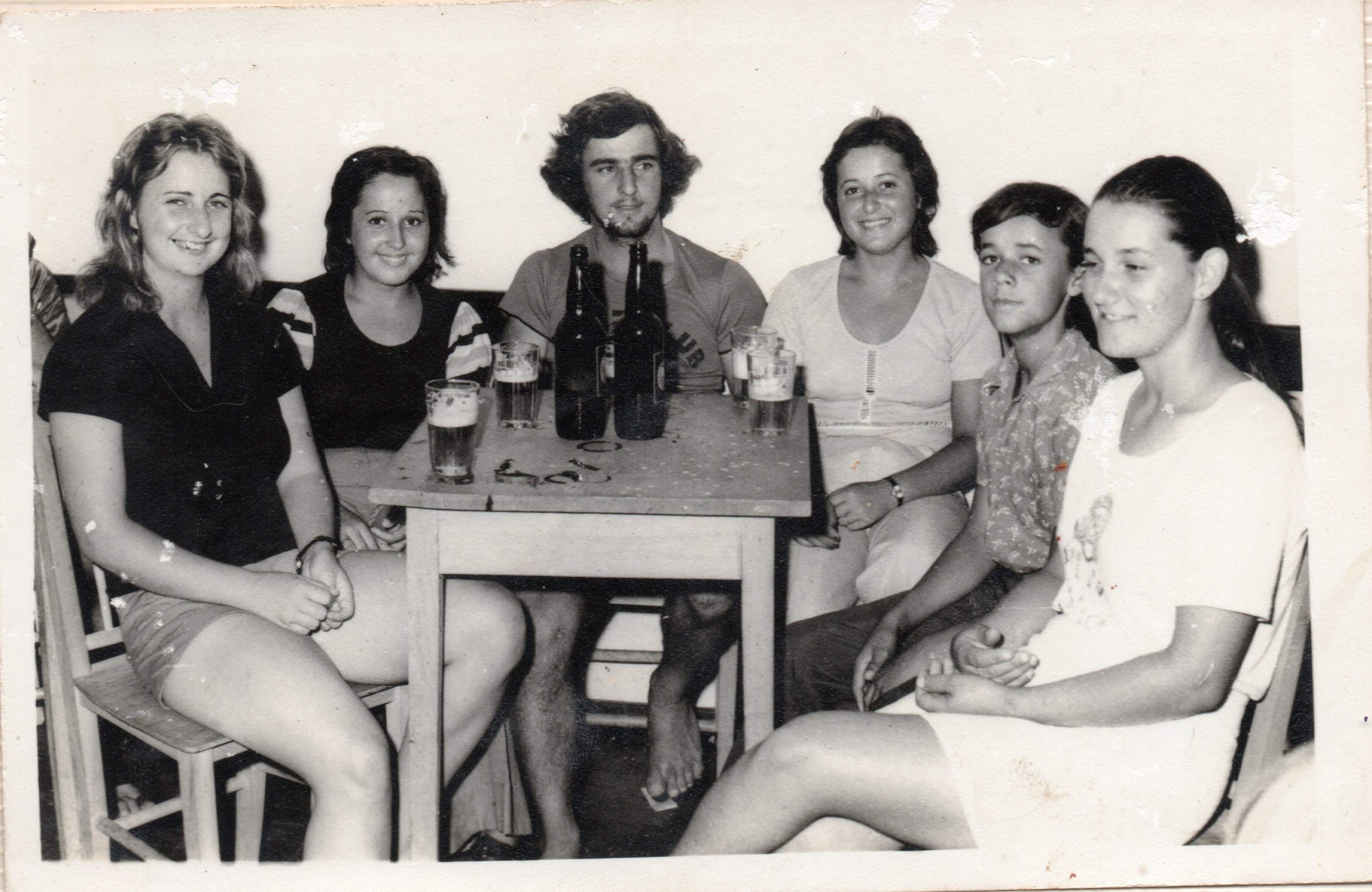 Os primos e primas Cadorin no carnaval na Sociedade Recreativa Primavera no de 1974-75. ( As solteiras não iam aos bailes se não tivesse um parente homem para acompanhá-las! O menino Profirio estava acompanhando as duas irmãs. Eles moravam, ainda moram em Florianópolis, no Morro das Pedras) Da esquerda para a direita: Benilde Cadorin (filha de Alberto Cadorin), Nilsa Cadorin (filha de Plácido Cadorin), Blévio Cadorin (filho de Alberto), ? , Porfirio Cadorin (filho de Plácido), Lauda Cadorin(filha de Salvador Cadorin)