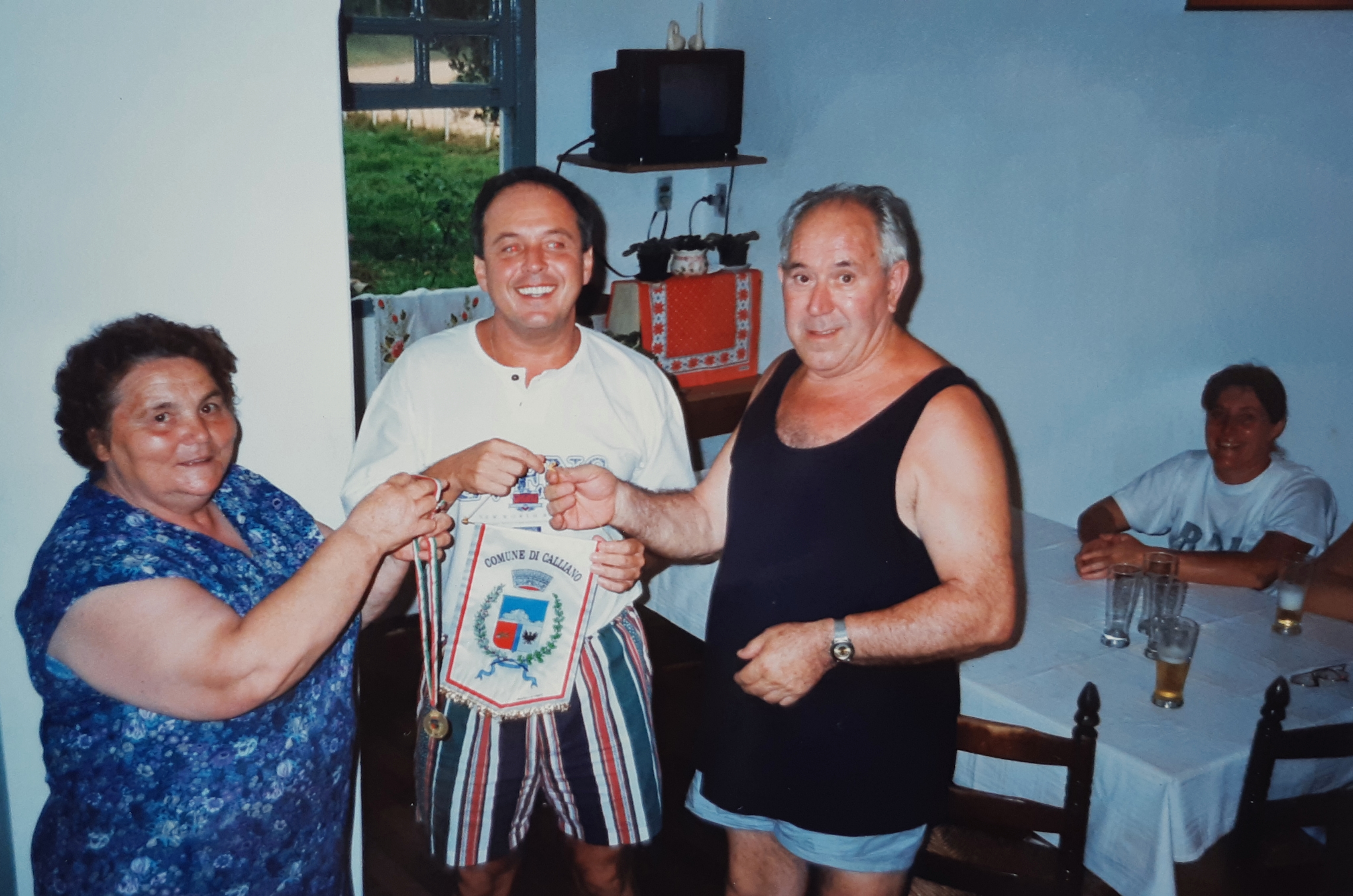 O casal de trentinos, de Calliano, Ana Pedrotti e Renzo Rospocher (in memoriam), visitaram Nova Trento em 1986 e trouxeram ao presidente do Circolo Trentino, Ramom Tridapalli, a flâmula com o brasão de Calliano. Por ocasião dos intercâmbios realizados com a província de Trento nas décadas de 1980-90, o casal se tornou uma importante referência de acolhimento aos intercambistas. Sua casa sempre esteve aberta para acolher e dar, por assim dizer, um colo, aos intercambistas que estavam longe de casa. Seus filhos Manoela e Mauro com frequência visitam Nova Trento e contam o fascínio dos pais com as belezas do Brasil e o acolhimento que receberam aqui em Nova Trento..