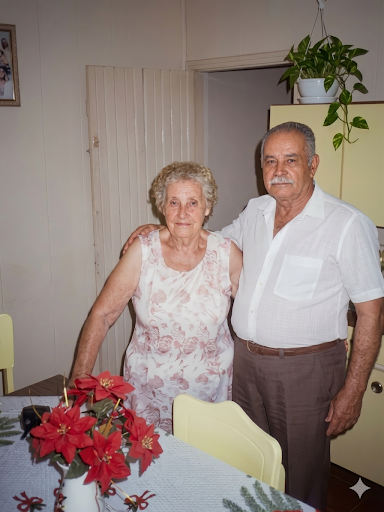 Saudosa Raquel Poli, professora de dos anos inciais no bairro Ponta Fina Sul nos anos 60-70 e seu esposo Oswaldo de Souza, funcionário público municipal, vereador . Pais da Sônia, Estelita, Carlos e Nelson, residiam no início do bairro Trinta Réis. Fotografia registrada no ano 2000, pelo historiador, Dr., Andesron Sartori.