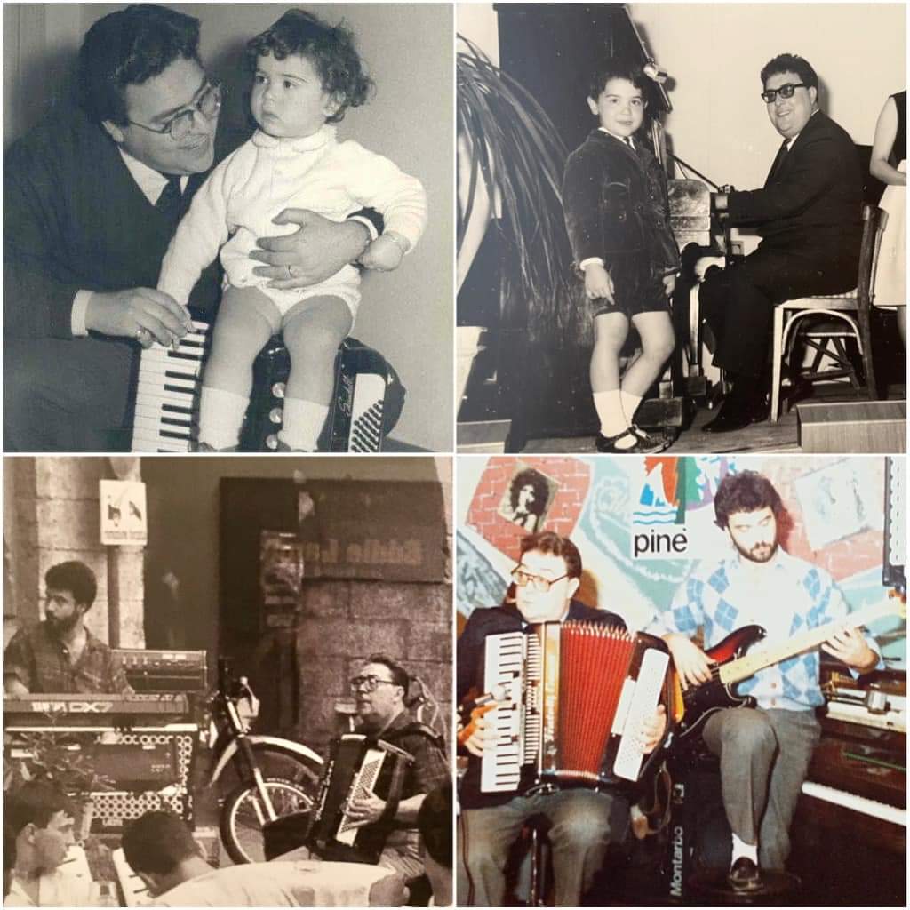 Fotos que o filho de Ugo, Roberto, hoje músico profissional de bandas de jazz, nos tempos de infância e juventude, acompanhando seu pai e fonte de inspiração .(Foto do Facebook de Roberto Gorgazzin)