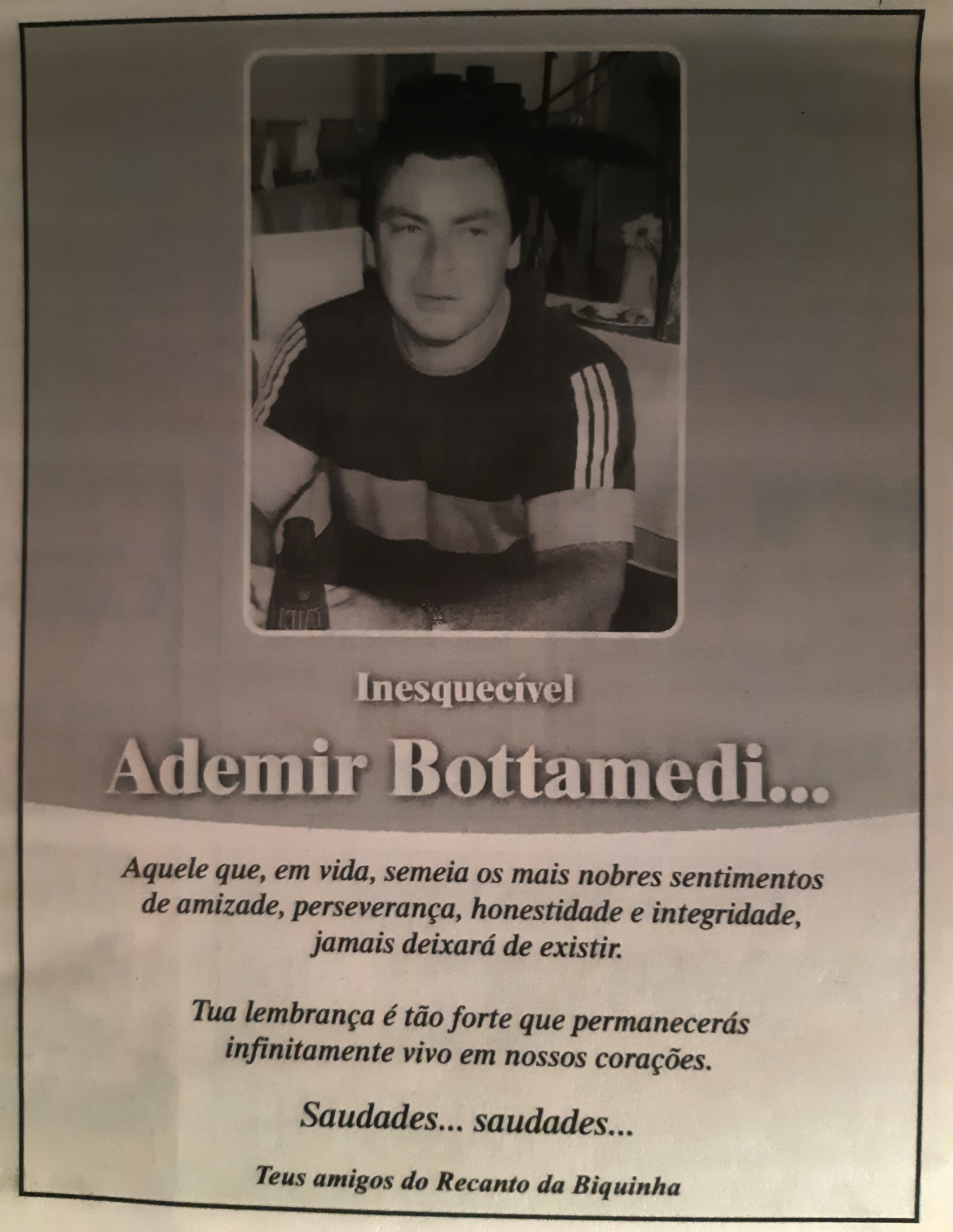 Ademir residia nas proximidades do oratório de São Roque. Um homem de respeito e inserido na comunidade. Faleceu prematuramente de câncer em fevereiro de 2009.