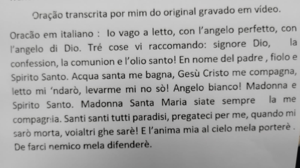 De origem polonesa, Maria Jaczack era era casada com Senator Marchi. Residiram por longos anos nas localidades de Saudade Grande e Pitanga. O casal teve dez filhos. Faleceu aos 92 anos e seu corpo foi sepultado no cemitério de Baixo Salto. O diretor do Centro de Memória, História e Patrimônio de Nova Trento, Juliano Mazzola registrou em vídeo uma entrevista e transcreveu a oração acima , em italiano, que dona Maria sabia de memória.