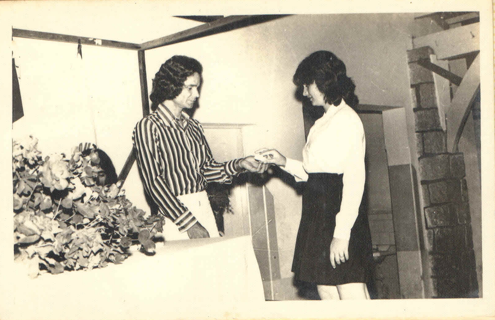 Maurilio Merizio, professor de Língua Portuguesa na cerimônia de formatura da antiga oitava série do Colégio Francisco Mazzola em 1977. O professor morreu jovem marcando com seu exemplo de seriedade e descontração no ensinar toda uma geração de estudantes.