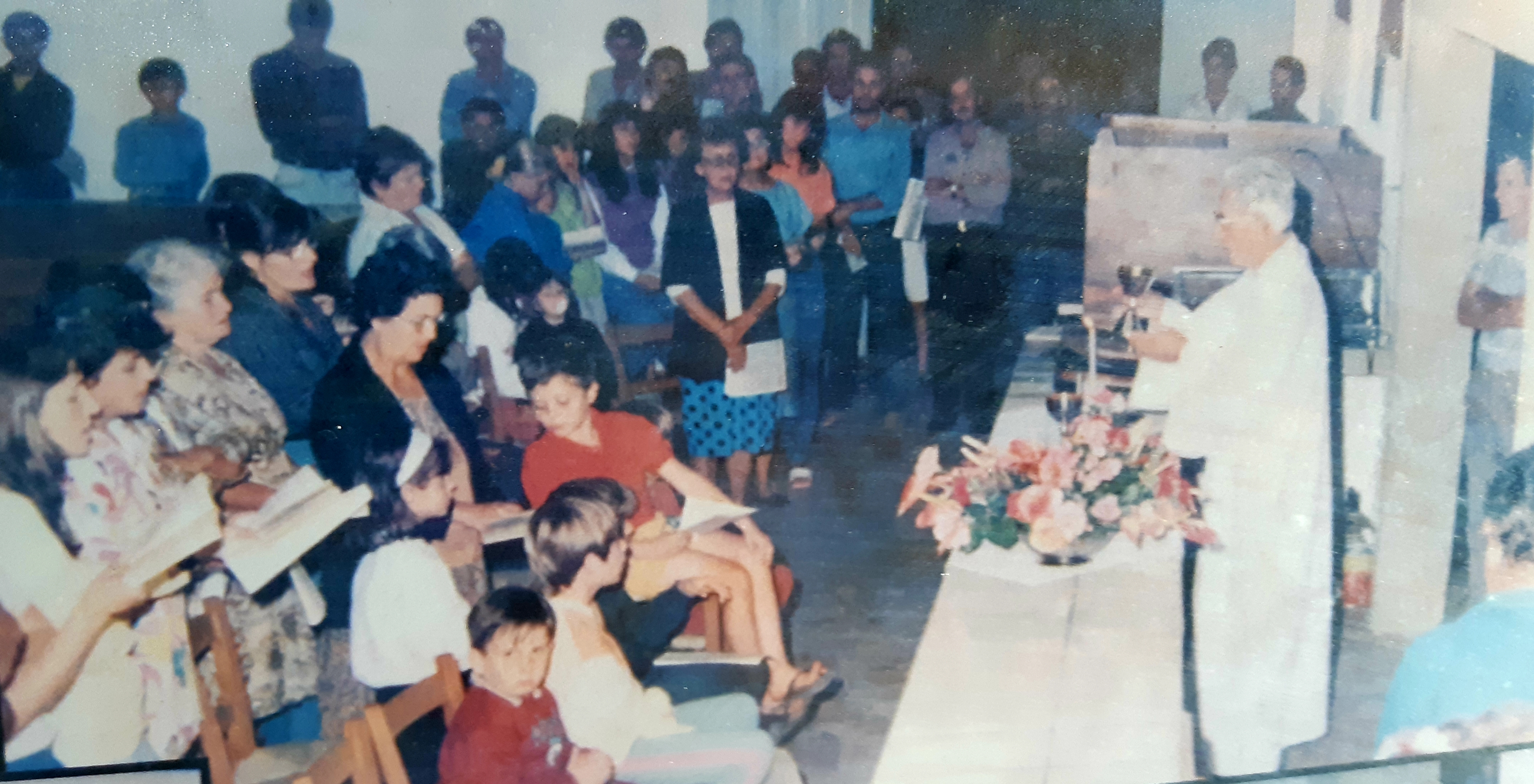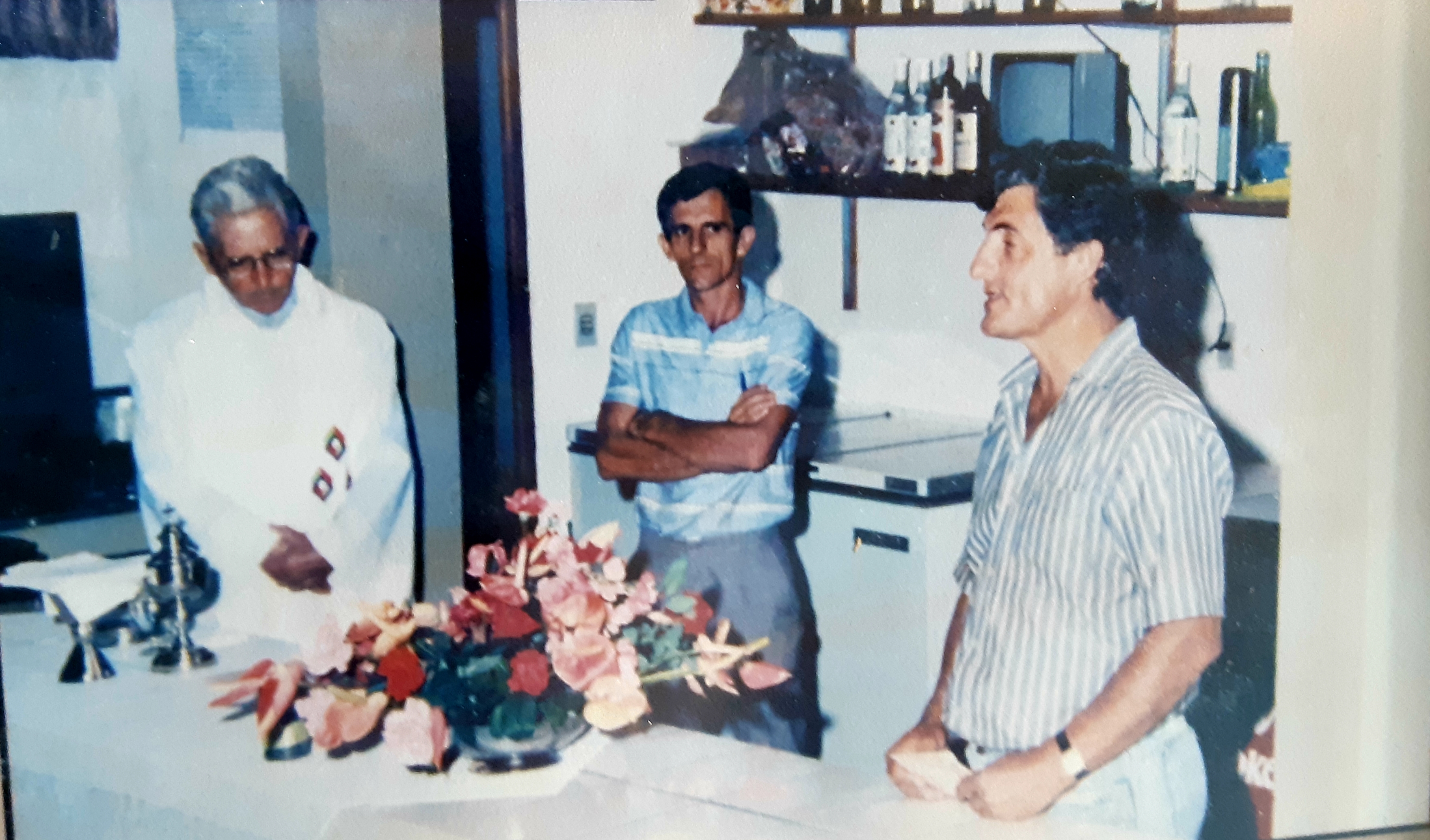 Padre Cláudio Piva celebrando a missa de benção do local.