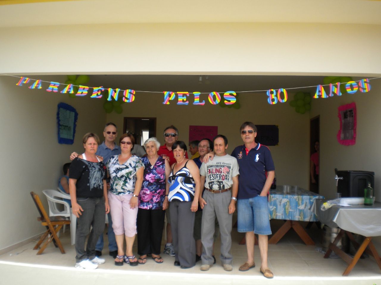 Foto do acervo de Aline Gandin Scalvin, tomada por ocasião dos 80 anos de sua mãe em 2013, Dona Odete Dalbosco Gandin, junto aos seus filhos. Nascida em 1930, no centro da cidade, filha de José Dalbosco e Anunciata Polli Dalbosco, foi morar no Trinta Réis, atualmente Rua Independência, por ocasião do casamento com Hercílio Gandin, onde viveu até o falecimento em 2015. Na foto, em primeiro plano, da esquerda para a direita, aparecem: Rita, Lizalba, Dona Odete, Lucia, Deca (Agostinho) e Inácio. Atrás: Carlos, Marcos e Sinésio (Pipoca).