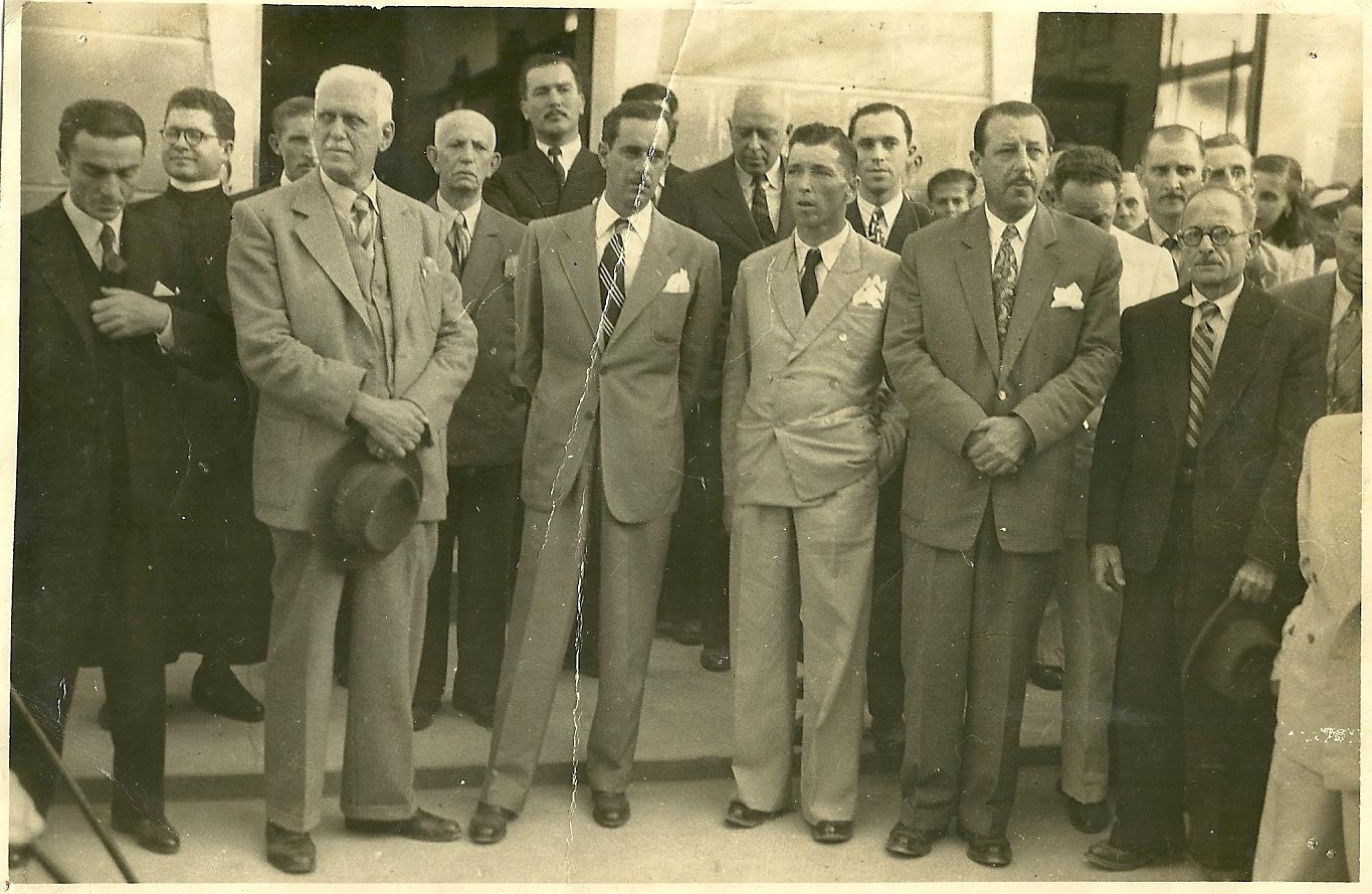 Aparecem também na foto, entre outros, Eliseu Tridapalli, Padre Santini, Romeu Boiteux Piazza, José Borgonovo, Irineu Busnardo e Francisco Mazzolla.
