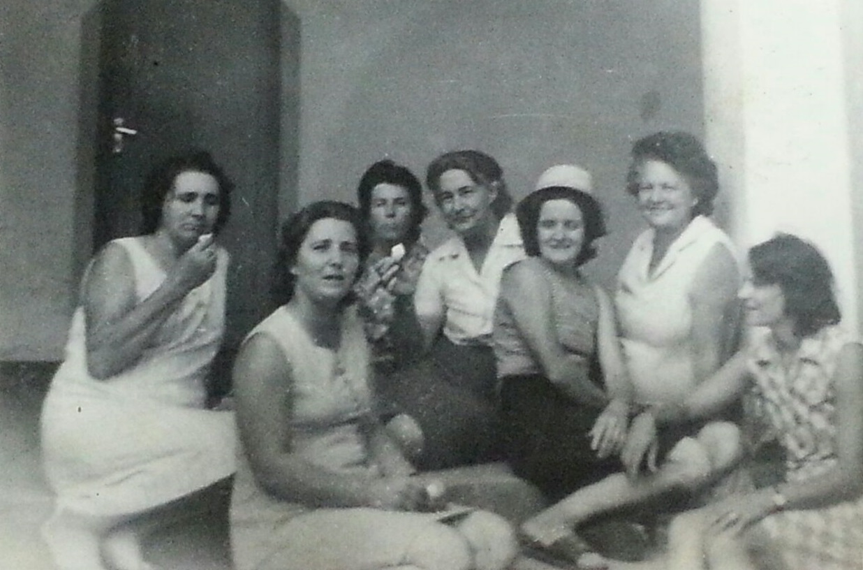 Da esquerda para a direita: em pé, professora Rosilda e Cinira. sentadas: dona Inês, Rosinha, Zulmira, Iolanda e Prof. Cleonice.
