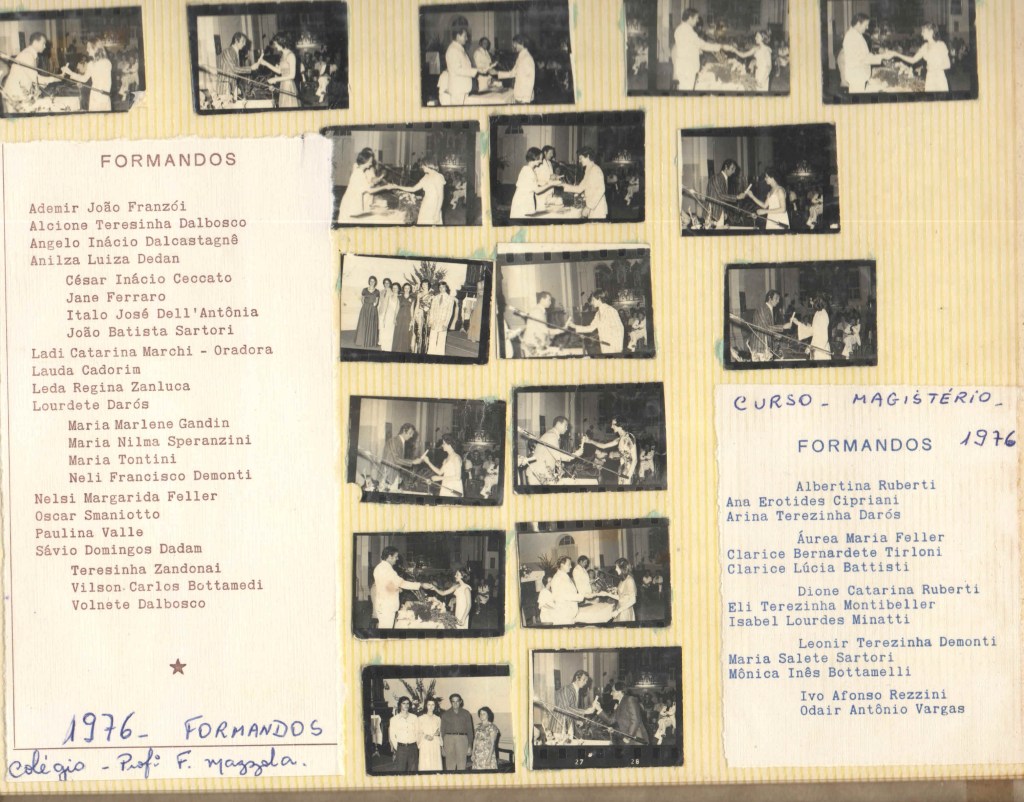 Nesta foto estão: Florentino Franzoi, Alcino Grott, Hugo Piva, Nalda Maffezzolli Tomazoni, Toni Tomazoni, Gentil Cecato, Nida Cecato Darós, Helena Manzoli, Elza Botamedi, Cremilda Tridapali, Lauro Mendonça, Janio Mendonça, Dante Mendonça, Rogério Mendonça, Antônio Maffezoli, Luiza Sgrott Maffezoli, Valdir Franzoi, Francisco Cadorin.